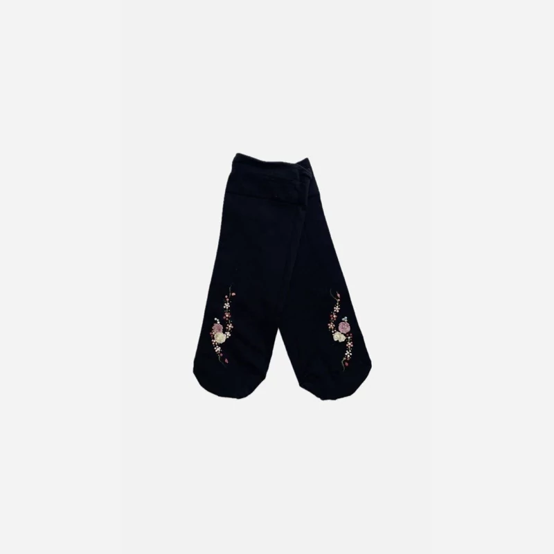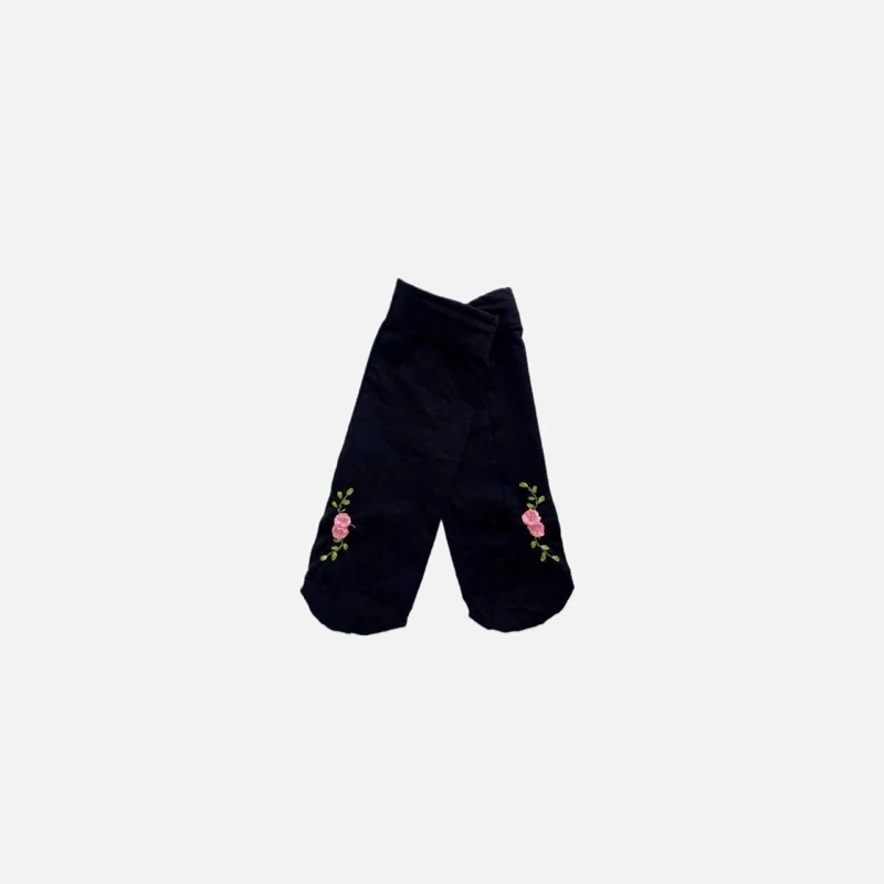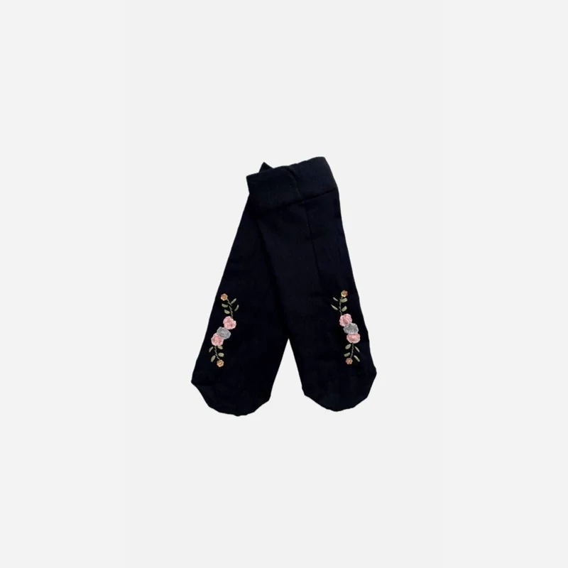 جوراب مشکی ضخیم گلدوزی و سنگ کاری شده